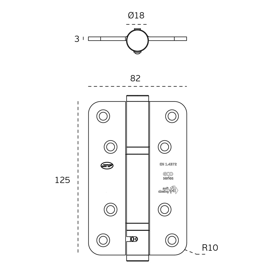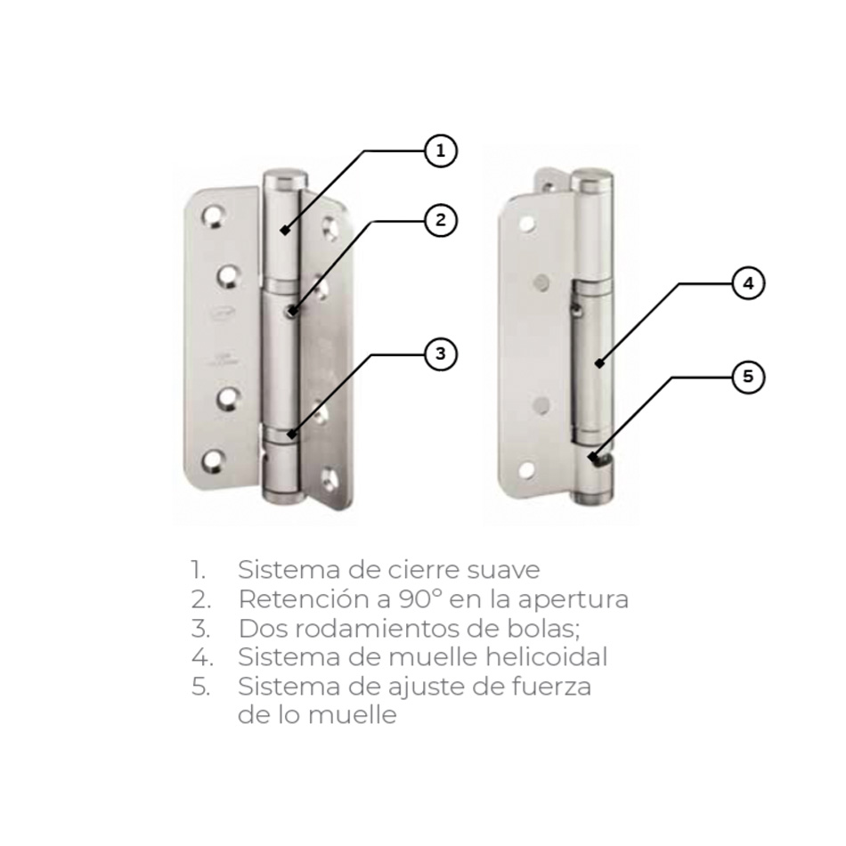Bisagra de retorno con rulimanes cierre suave y retención en 90°