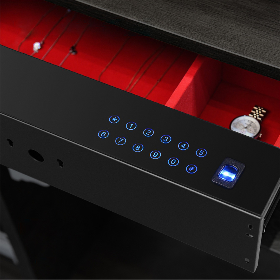 Apertura por huella digital, clave cifrada y llave de seguridad