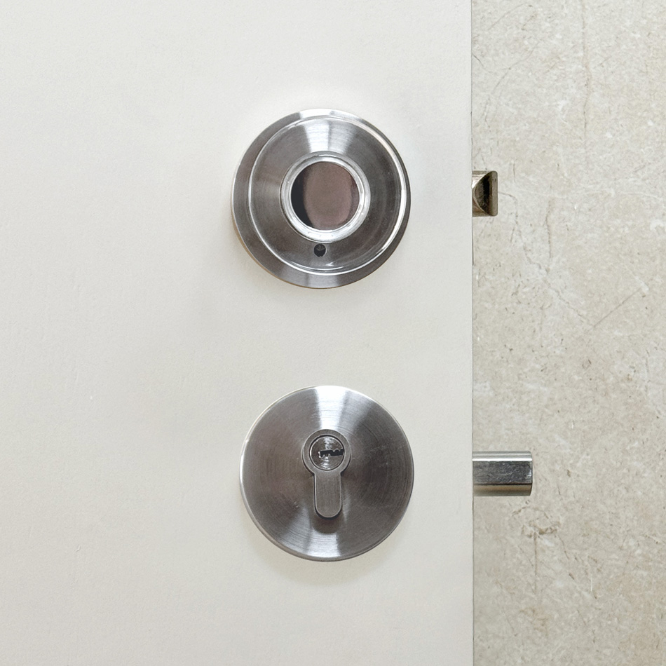 Cerradura de interior modelo Monaco. Color: Plateado Satinado. Uso recomendado: Dormitorios, baños, bodegas, closets, etc.