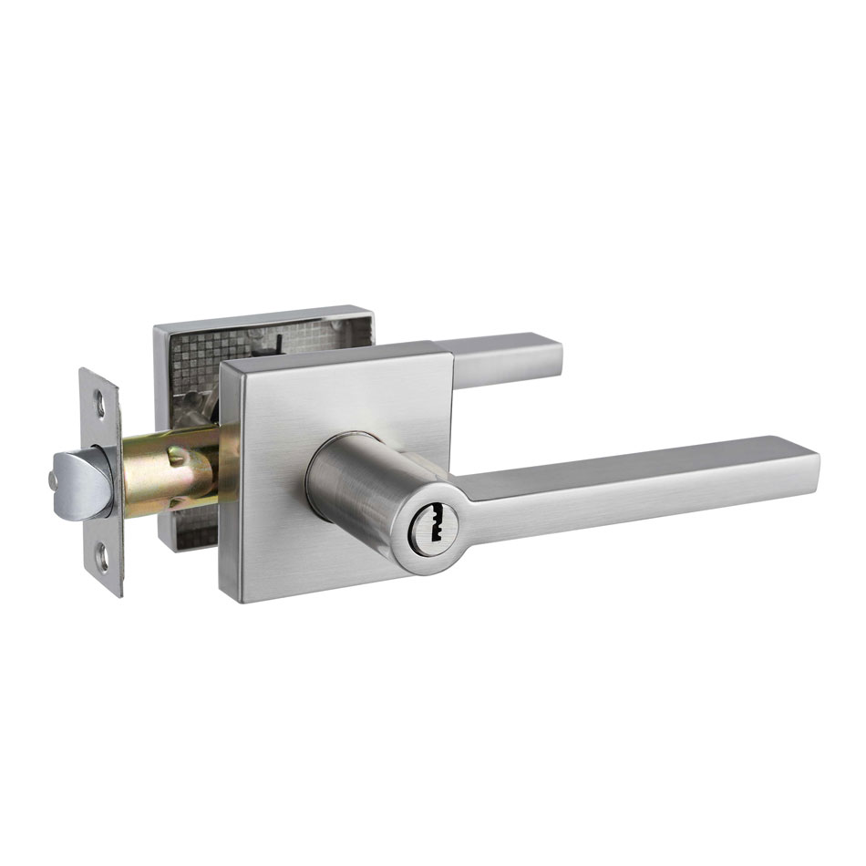 Cerradura de interior modelo PRAGA. Color: Plateado Satinado. Uso recomendado: Dormitorios, baños, bodegas, closets, etc.