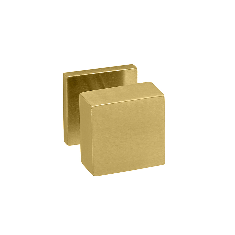 Pomo QUADRO – Dorado Color: Dorado Satinado Uso recomendado: Baños, dormitorios, puertas de paso, etc. Incluye: Bocallave PRODUCTO BAJO PEDIDO