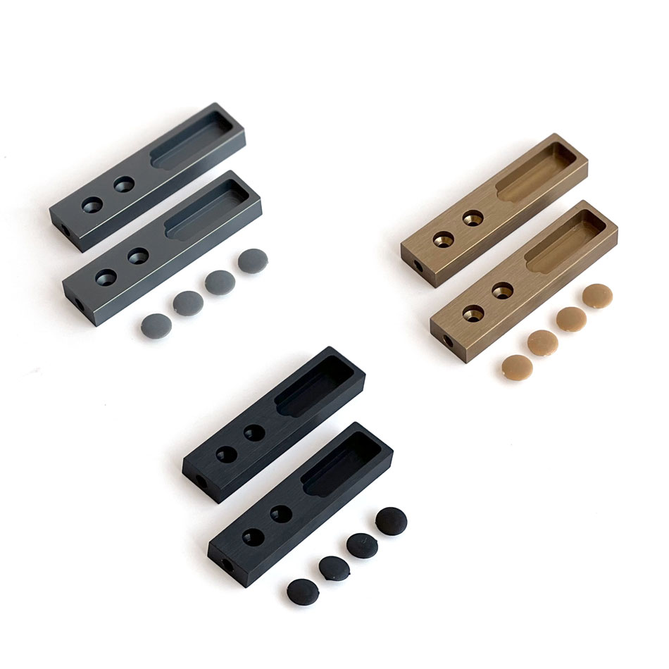 Soporte Lateral para Tubo Rectangular Material: Aluminio Color: Negro Mate, Gris Mate, Dorado Mate Permite instalar en los laterales o en el tablero superior